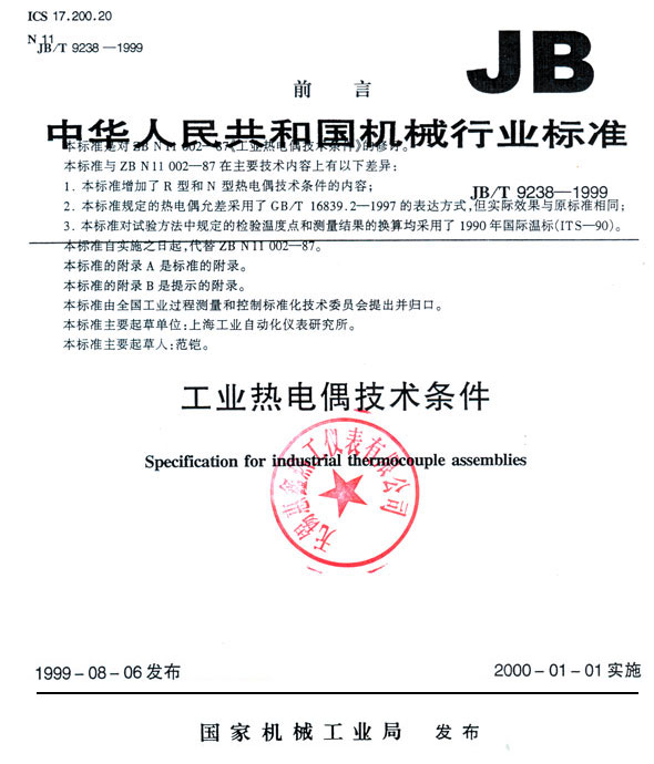 工業(yè)熱電偶技術條件